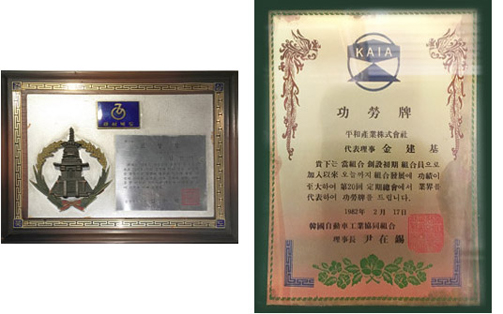 Awarded the industrial standardization grand prize by (the President) and awarded the gold prize for the model circle (by the President)