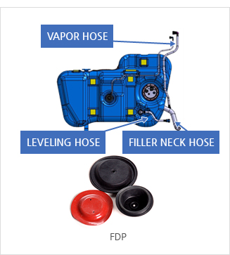 EPDM (ethylene propylene diene monomer rubber) has good tensile strength within the wide hardness range, and it has very excellent ozone resistance, weather resistance, chemical resistance and electric insulation. Its particular strengths are low temperature flexibility, high temperature performance and ozone resistance. Vulcanized peroxide has good heat resistance and compressive elongation up to 150℃. Applied Products: Diaphragm, cup and seal for brakes, gasket for fuel cell vehicles, capacitor seal, etc.